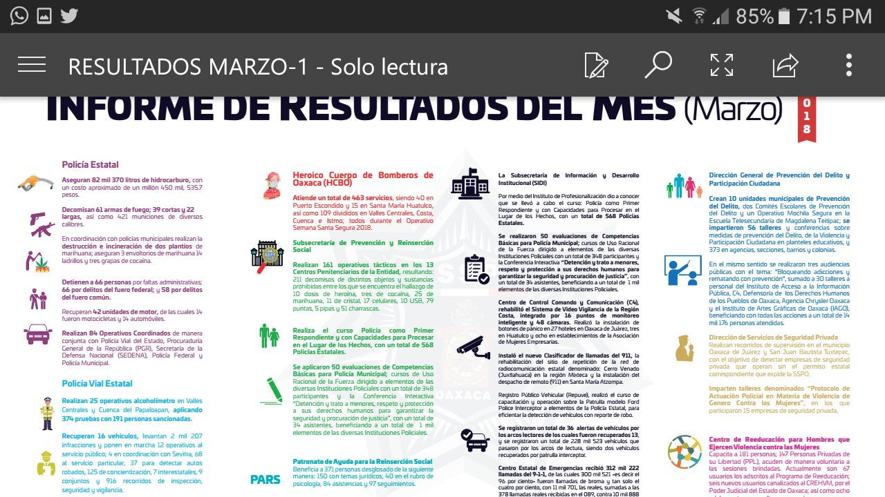 Oaxaca de Juárez, Oaxaca; abril 03 de 2018. La Secretaría de Seguridad Pública de Oaxaca (SSPO), dio a conocer los resultados obtenidos durante el pasado mes de marzo de 2018 en materia de seguridad pública de las diferentes áreas que la conforman.